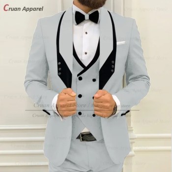 African Design Slim Fit 2 Piece Solid Men Suits for Wedding Groom Tuxedos Formal Suits for Prom Party Best Man Blazer Pants