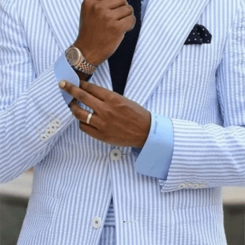 2 Pieces Casual Men Suits Seersucker Stripe Outfits Custom Wedding Groom Tuxedo Costume Homme Peaked Lapel Jacket+Pants